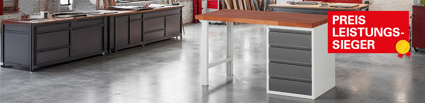 Viele Modelle sind höhenverstellbar, wahlweise mit oder ohne Schubladen, und sorgen so für gesundes, ergonomisches Arbeiten in jeder Umgebung. Ob für die industrielle Fertigung oder den Handwerksbetrieb – unsere Werkbänke bieten zuverlässige Stabilität und lassen sich auch bei ungleicher Belastung flexibel einsetzen.