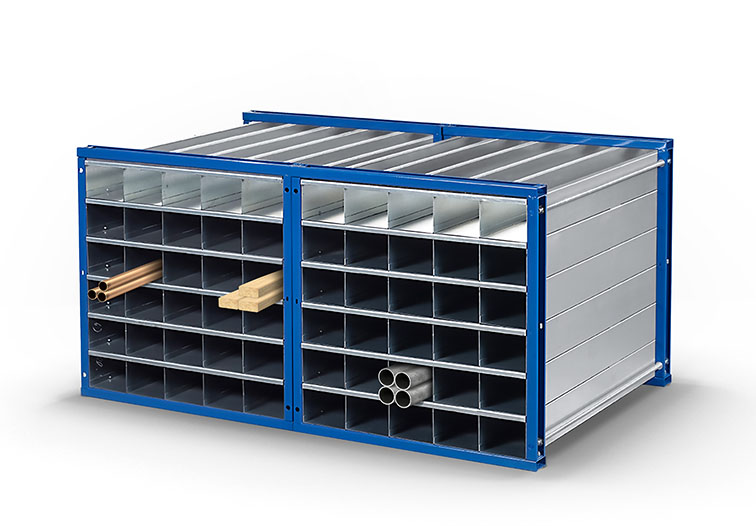 - Kleinteileregale: Ideales Aufbewahrungssystem mit mehreren Fächern, Schütten oder Gitterkörben, um kleine Gegenstände oder Materialien übersichtlich und gut zugänglich zu organisieren.