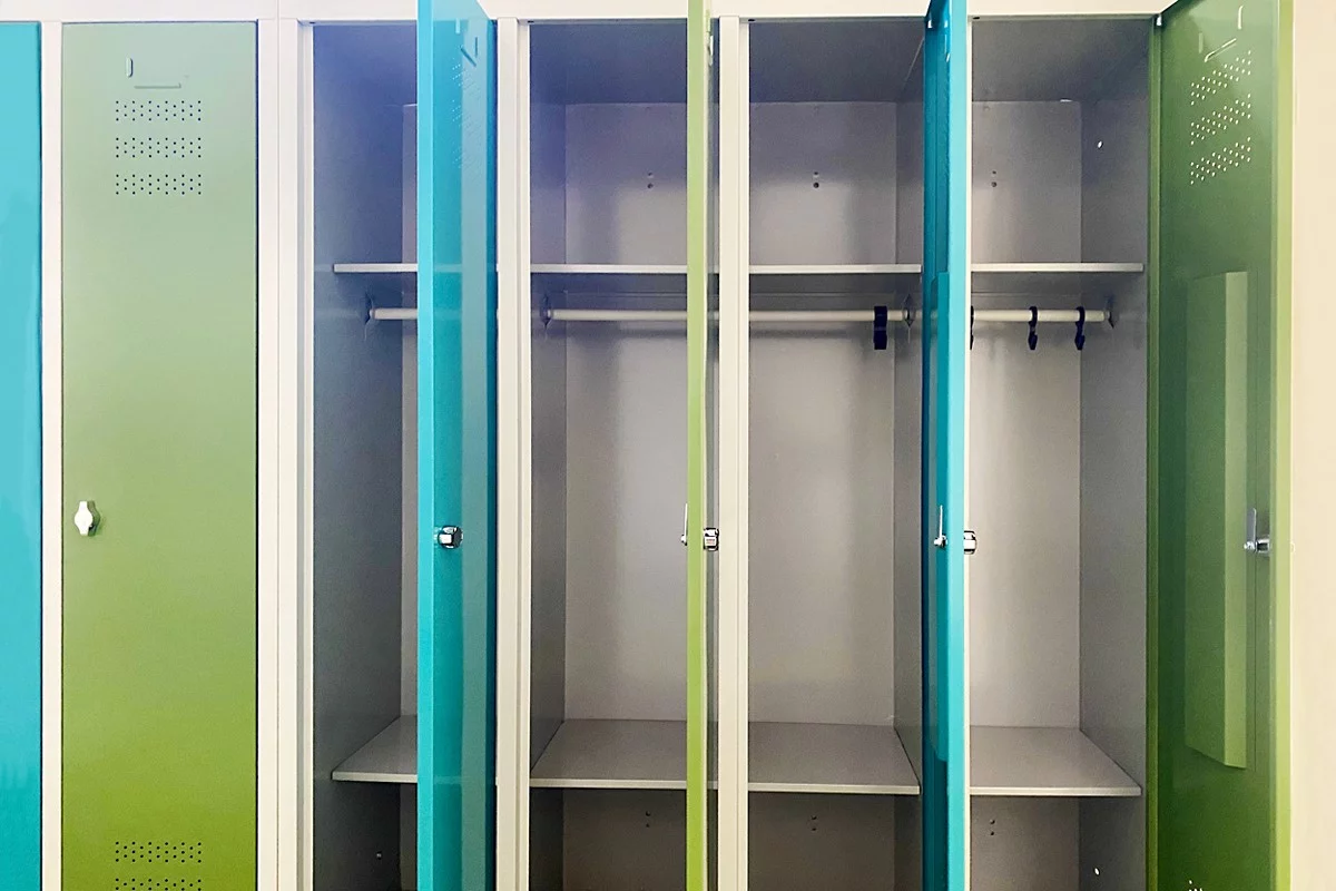 Unsere speziell gestalteten Spinde für Kitas und Grundschulen berücksichtigen die Bedürfnisse der Kleinsten. Mit zwei Kleiderhaken, zusätzlichen Fächern und Ablagen sorgen sie dafür, dass alles leicht zugänglich und griffbereit ist. Diese Spinde sind 145 cm hoch und in verschiedenen Abteilbreiten erhältlich – 30 cm oder 40 cm.